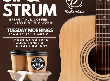 “Sip & Strum” – A Weekly Instructional Jam at Bella Music!
